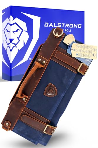 Dalstrong - Nomad knivrulle - 350 ml slitstark kanvas och toppkornigt läder rullväska - 13 fack - inre och bakre fickor med dragkedja - reseförvaring/fodral (Dalstrong blå)