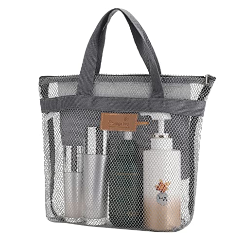 Grevosea Bärbar duschväska och strandnät – reseförvaring i Oxford för badrum, camping, gym, simning, sportspel (27 x 20 cm grå)