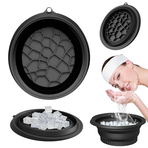 Lets Joy Face Ice Bath Bowl, ansiktsskal för is, svart ansiktsdykskål, silikontvättväska, skål för ansiktssirbad, vikbar inbyggd tvättskål, bärbar reseförvaring