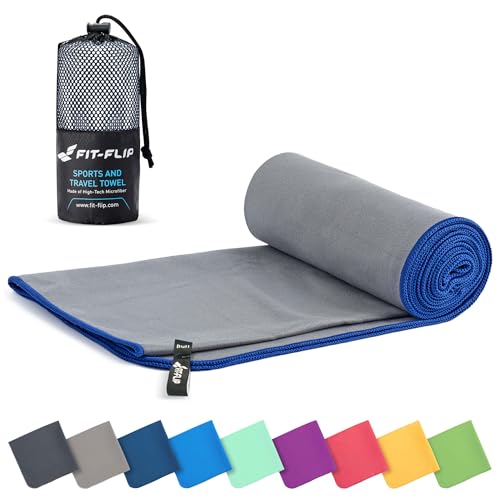 Fit-Flip microfiber handduk - kompakt, ultralätt och snabbtorkande microfiberduk – en perfekt resehandduk, sporthandduk och strandhanduk – handdukar för camping (70x140cm grå)
