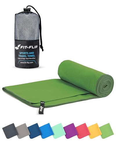 Fit-Flip microfiber handduk - kompakt, ultralätt och snabbtorkande microfiberduk – en perfekt resehandduk, sporthandduk och strandhanduk – handdukar för camping (70x140cm grön)