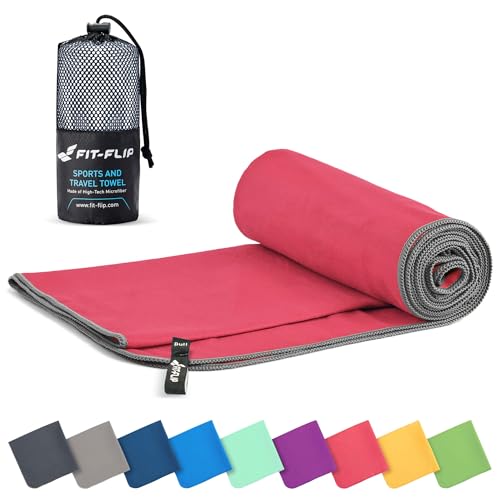 Fit-Flip microfiber handduk - kompakt, ultralätt och snabbtorkande microfiberduk – en perfekt resehandduk, sporthandduk och strandhanduk – handdukar för camping (90x180cm Pink)