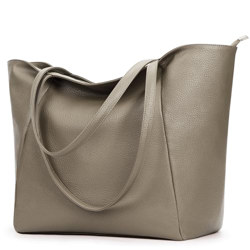 KALIDI Stor tygväska i veganskt läder, vardaglig, dragkedja, arbetsväska, weekendväska, hobo, för kvinnor, 23 L, överdimensionerad, axelväska, resehandväska, Medium
