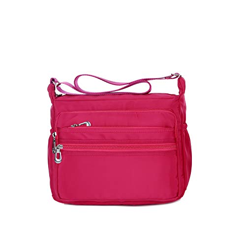 NOTAG Dam axelväska flera fickor axelremsväska vattentät tygväska handväska resehandväska lätt Messenger-väska för vardaglig sport skola vandring resor, 2 storlekar, Rosa, S