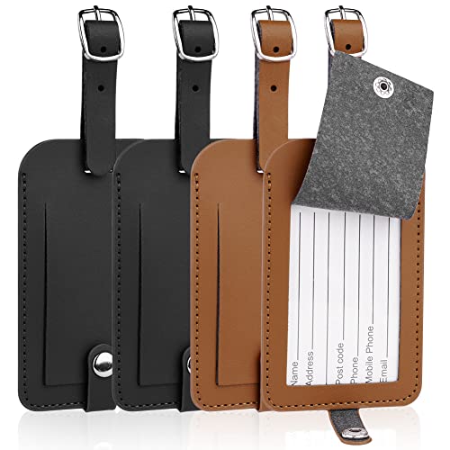Flintronic 4 st bagagelappar, läderbagageetiketter, resväskans namn ID-korttagg-set, läderetiketter resehandväska tillbehör för att förhindra förlust av väskor (2 svart + 2 brun)