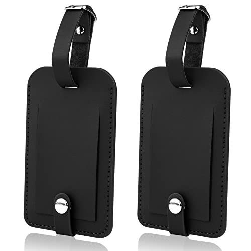 Flintronic 2 st bagagelappar, läderbagageetiketter, resväskans namn ID-korttagg-set, läderetiketter resehandväska tillbehör för att förhindra förlust av väskor (svart)