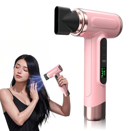 Pro Uppladdningsbar resehårtork - 3 hastigheter och 3 temperatursladdlösa hårtorkar, 15 000 mAh bärbar hårtork med digital skärm för kvinnor på camping,