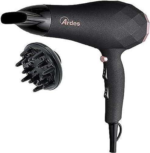 ARDES - ARPHON02 hårtork STYLO 2 200 W, professionell kompakt hem-/resehårtork, hårtork med 2 tillbehör, diffusor och luftkoncentrator, hårtork med avtagbart filter