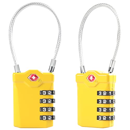 Diyife TSA bagagelås [2 stycken uppgraderad] 4-siffrig kombination säkerhetslås reselås, med 14 cm flexibel kabel för resväska bagage ryggsäck skola eller gym skåp, etc gul)