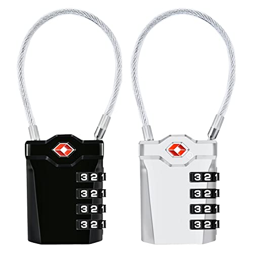 Diyife TSA Bagagelås [2 ST] 4-siffrigt Kombinations Säkerhetslås Reselås, med 14 cm Flexibel Kabel för Resväska Bagage Ryggsäck Skola Eller Gym Skåp, etc. (Svart + Silver)