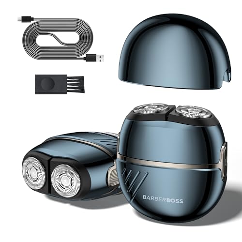 BarberBoss roterande rakapparat för män, bärbar rakhyvel, kolstålblad, dubbla flytande huvud, reselås, kompakt skägg och ansikts-rakapparat för män, QR-2701