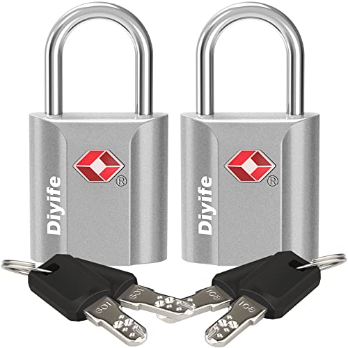 Diyife TSA Bagagelås, [2 Stycken 4 Nycklar] Nyckellås, Höghållfast Zinklegering Säkerhetslås Reselås för Resväska, Bagageväska, Etui etc. (Silver)