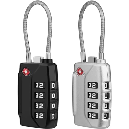 Diyife 4-siffrigt TSA bagagelås [2 stycken] [uppgraderad] kombination säkerhetslås reselås – silver och svart, TAL122