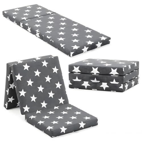 EGO HOME Fällmadrass 75 x 195 cm, hög 10 cm gästmadrass vikbar, hårdhetsgrad H3, vikbar madrass, resemadrass, 3 delar, Visco gelskum, vikbar madrass för resor, camping, golv, gästsäng
