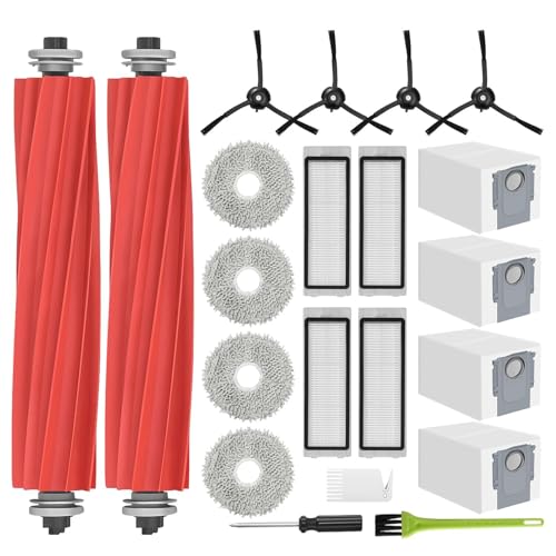 Tillbehörssats för Roborock S8+, S8 Pro Ultra Robotdammsugare reservdelar, 2 rullborstar, 4 filter, 4 moppkuddar, 6 sidoborstar, 4 dampåsar, 1 självrengörande borste, 1 rengöringsborste, 1 skruvmejsel