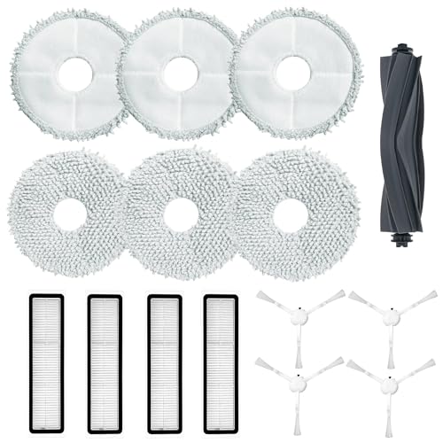 Laimaiou tillbehör kompatibla med Xiaomi Robot Vacuum E12 Xiaomi Vacuum E10 robotdammsugare reservdelar 15 förpackningar 2 huvudborste, 4 filter, 6 sidoborstar, 3 moppdukar