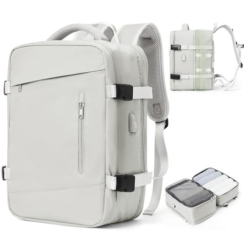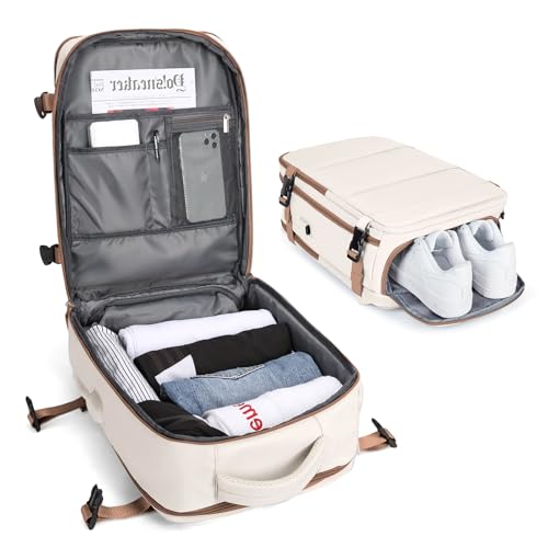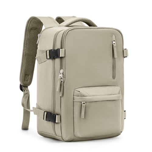 Snoffic Reseryggsäck, handbagage för män, kvinnor, flygresor, ryggsäck för 17,3 tums bärbar dator, BEIgE, 16.53 x 11.41 x 7.87 inches(L x W x D)