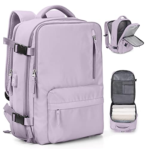 Liten reseryggsäck, handbagage för flygplan som får under sittplatsen, laptopryggsäck med USB-laddningsport, perfekt för män och kvinnor, skolväska för pojkar och tonåringar, lila, 40 x 20 x 25cm-20L,