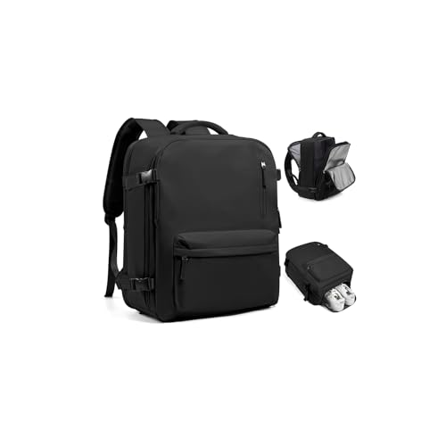 Snoffic Reseryggsäck, handbagage för män, kvinnor, flygresor, ryggsäck för 17,3 tums bärbar dator, Svart, 16.53 x 11.41 x 7.87 inches(L x W x D)