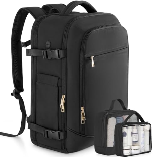 MOLNIA stor reseryggsäck, 47 L handbagage, 43,3 cm bärbar ryggsäck flyggodkänd, expanderbar affärsresväska, A-svart (med förpackningskuber), X-Large-Expandable, svart