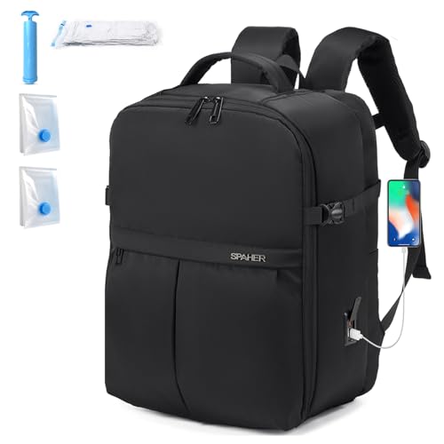 SPAHER 25L Reseryggsäck Handbagage 40x30x20cm Wizzair Laptop Ryggsäck 15,6 Tum med USB Laddningsport och 2 Vakuumpåsarför Affärsarbete Reseryggsäck Skolryggsäck för Notebook College Dam Herr