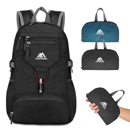 flintronic 20 l ultralätt vikbar ryggsäck, reseryggsäck, vandringsryggsäckar, små vandringsryggsäckar, vattentät, för herr dam, för vandring vandring camping, svart, M