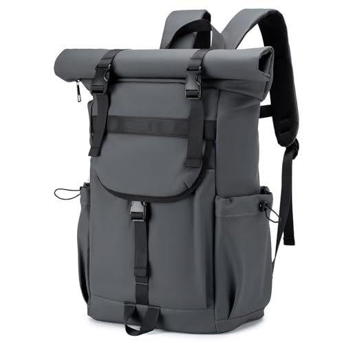 YOODI Rolltop Ryggsäck Vattentät Dam Herr Stor Reseryggsäck Med Laptopfack 17-23L Cykelryggsäck Ryggsäck Vandring Handbagage Ryggsäcks Skola För Uni Arbete Resa Vandring, Grå