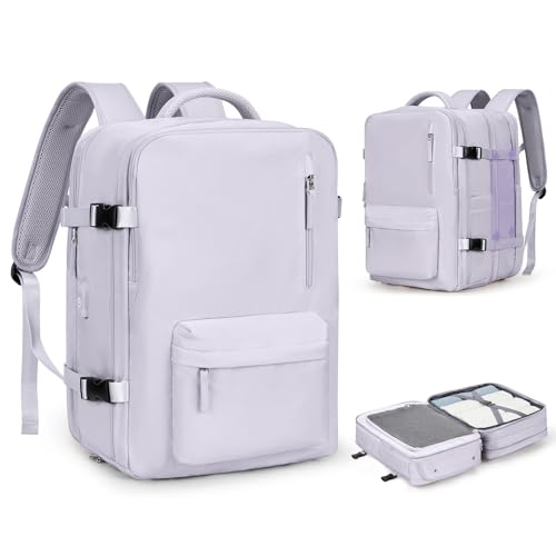 SZLX Stor Reseryggsäck För Damer Herr Kabinväskor För Ryanair Easyjet Handbagageväska Under Sätet Handbagage Reseryggsäck Kabinstorlek Flygryggsäck Fit 14-tums Bärbar Dator Med Skofack Lila