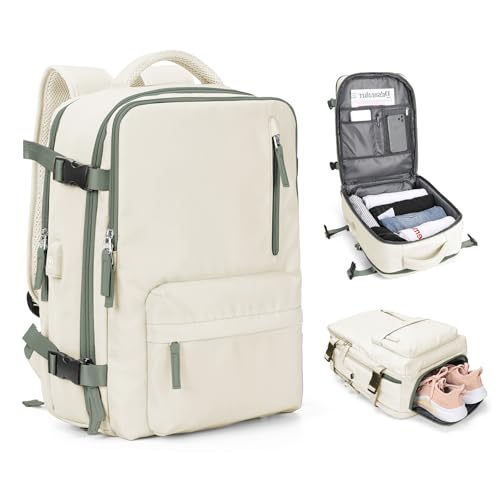 SZLX Stor Reseryggsäck För Damer Herr Kabinväskor För Ryanair Easyjet Handbagageväska Under Sätet Handbagage Reseryggsäck Kabinstorlek Flygryggsäck Fit 14-tums Bärbar Dator Med Skofack Beige Grön