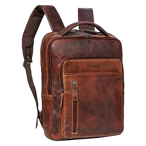 STILORD "Tory" läderryggsäck stor herr dam business vintage ryggsäck laptopryggsäck 13–14 tum handbagage reseryggsäck resa ryggsäck äkta läder, Salerno – brun, L, Vintage