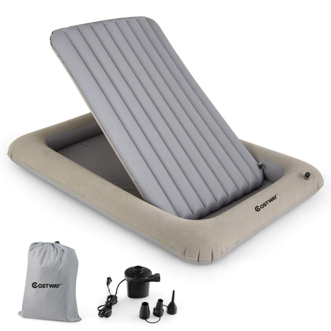 GIANTEX uppblåsbar barnsäng, resesäng med madrass, barnluftsäng med elektrisk pump, bärbar resesäng för småbarn, uppblåsbar säng, inkl. reparationssats, luftmadrass för barn (grå)
