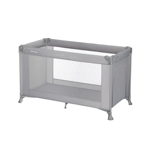 UBRAVOO Spjälsäng, höjdjusterbar spjälsäng för nyfödd, hopfällbar resesäng med tvättbar madrass och resväska (Grå)