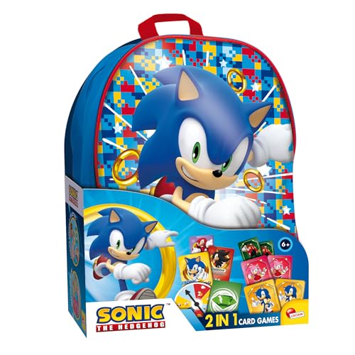 LISCIANI - SONIC - Ryggsäcksset med 2-i-1 kortspel Sonic - Resespel för barn från 6 år - 2 olika spel att spela i skolan - 2 eller fler spelare - Tillverkad i Italien