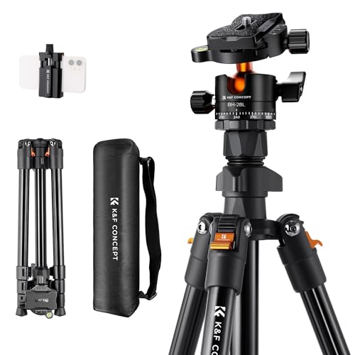 Kamerastativ, K&F CONCEPT mobilstativ, 178 cm stativ med mobiltelefonhållare, stativ för resor, trebensstativ för smartphone, aluminium resestativ K234A3 BH-36