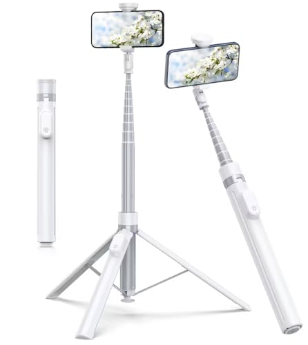 TONEOF 180cm Automatisk Stativ Selfie Stick, Auto-Open Telefon Stativ med Magnetisk FjäRrkontroll, 360° Dubbelaxligt Roterbart Resestativ, Stabilt Smartphone-Stativs föR iPhone/Android-Vit