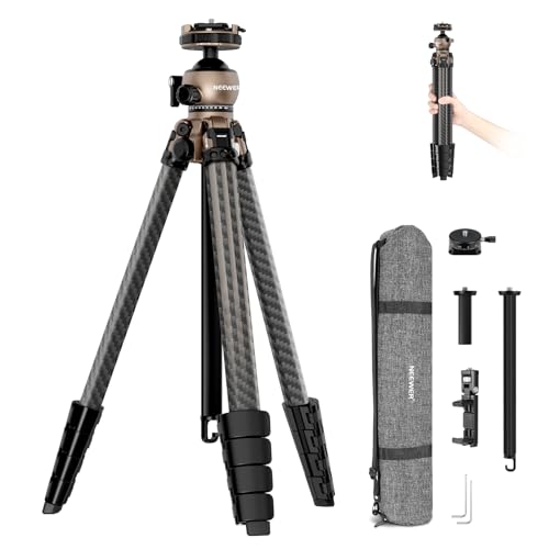 NEEWER 68 tum/172 cm kolfiberkamerastativ monopod med mittkolonn, 360° panorama bollhuvud, Arca typ QR-platta, väska, kompakt lätt resestativ max belastning 12 kg, N55C