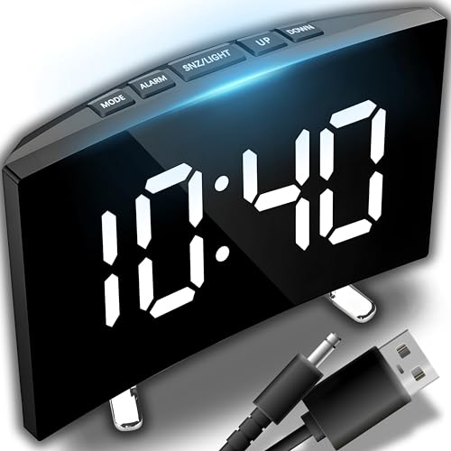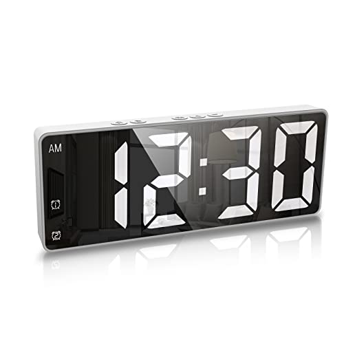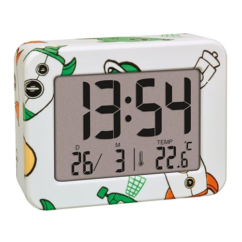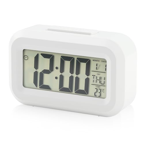 Plumeet Lätt att justera digital reseväckarklocka snooze-funktion, mjuk nattlampa, bred skärm tid och månad och datum och larm, progressivt ljudlarm och praktisk storlek (vit)