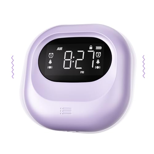 Mesqool Vibrerande väckarklocka för hörselskadade, uppladdningsbar tyst väckarklocka med knapplåsfunktion under kudden, veckodag/helg dubbelalarm, bärbar reseväckarklocka för långsovande