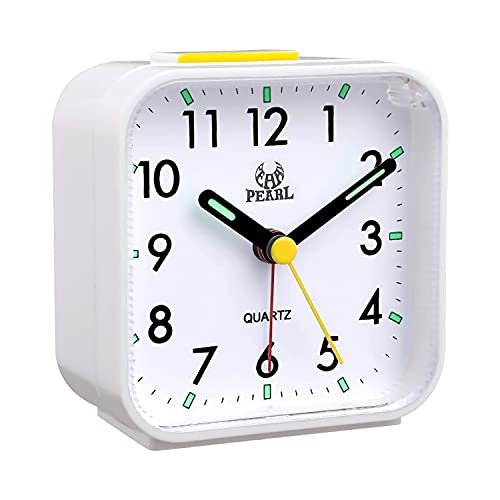 VORRINC Tyst analog väckarklocka med snooze-funktion och nattljus, reseväckarklocka, mjukt väckande, tyst kvartsurverk, pip-toner, larmklocka vintagedekoration, enkel inställning (vit)