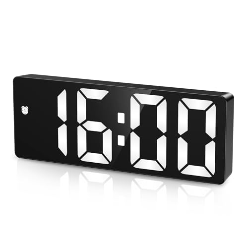 Retoo Väckarklocka, digital LED-klocka, bordsklocka, tickande, buller, larm, snooze-spegel, reseväckarklocka, temperaturvisning, batteridriven, hemmet, nattduksbord, sovrum, kontor, barn, stor skärm