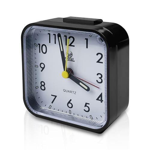 TIDEVAN Analog tyst analog väckarklocka tyst liten svart bordsklocka utan tickande larmklocka rootonditet reseväckarklocka med nattljus sänglampa