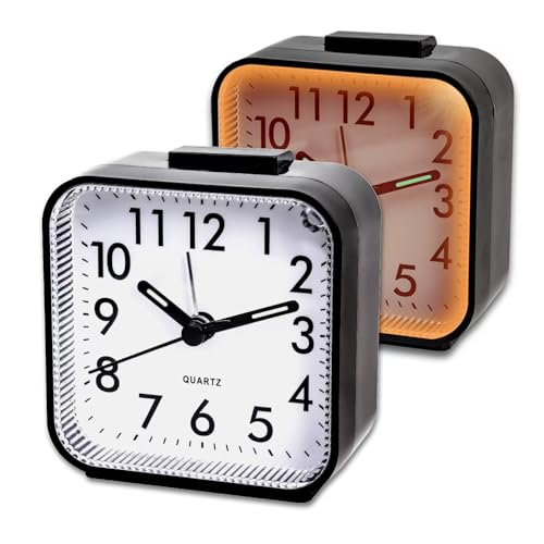 2 delar Analog väckarklocka utan tickande, svart väckarklocka med ljus, snooze-funktion, bärbar väckarklocka, självlysande, tyst liten reseväckarklocka för djupsömniga