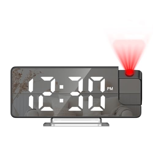 Ankilo Senaste dubbelprojektionsväckarklocka, väckarklocka, digital projektionsväckarklocka med temperatur och fukt, 180° projektklocka, elektronisk bordsklocka, reseväckarklocka, digital klocka för