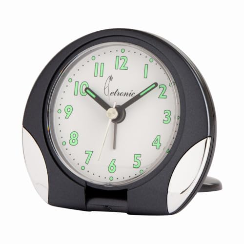 Trevi Retro säng-/reseväckarklocka med LED-bakgrundsbelysning och tyst svepande sekundvisare, grå, 10 x 3,6 x 8 cm