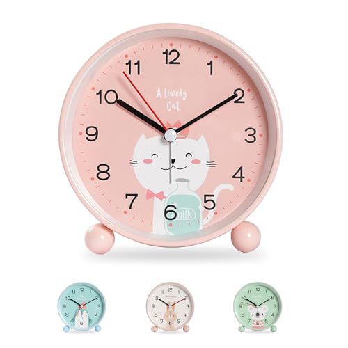Idota barnväckarklocka, barnväckarklocka med nattlampa väckarklocka barn utan tickande tyst söt barnväckarklocka ljud extrem nattväckarklocka reseväckarklocka elev väckarklocka – rosa katt