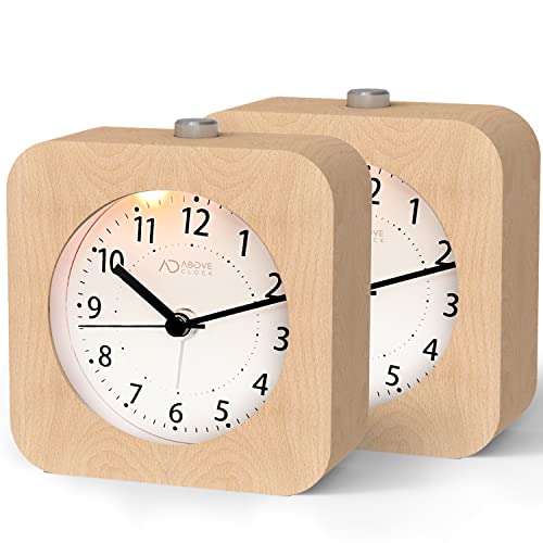 aboveClock Batteridriven morgonväckarklocka, trä analog reseväckarklocka, tysta nålar utan att ticka, med snooze-funktion, årlig ljus väckarklocka ökande ljudlarm 【Ljus trä - 2pack】