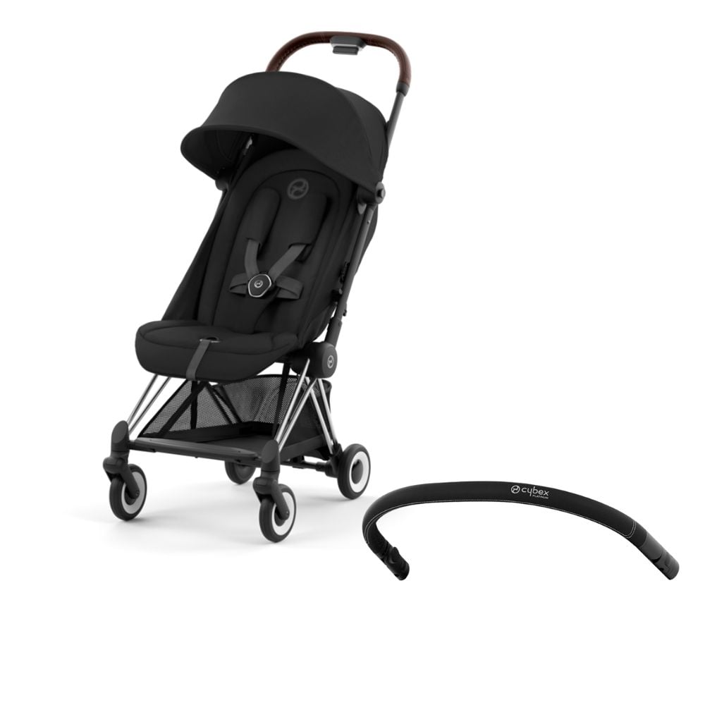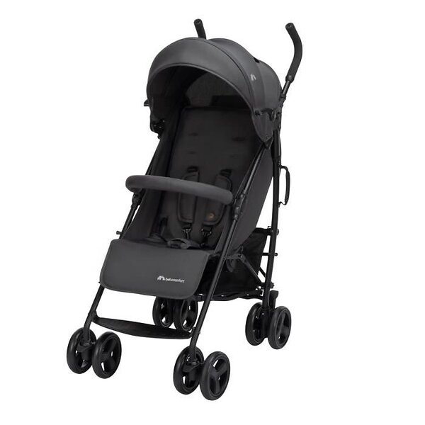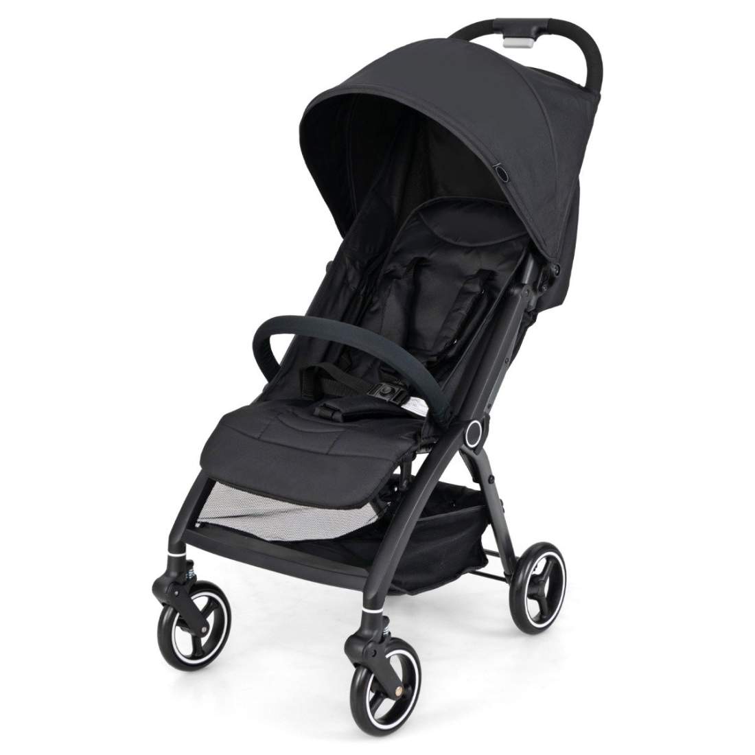 Enhandsfällbar barnvagn med justerbart ryggstöd och kapell, resevagn, svart