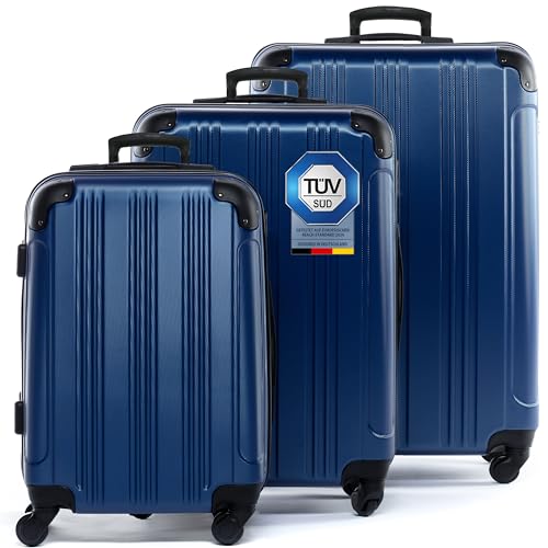 PROVITERA Set med 3 ABS-hårda resväskor, 38-59-90 liter hård väska, teleskopiskt handtag, lättrullande hjul, slitstark och lätt resevagn, handbagage, Blå, 37 x 23 x 55 cm, 42 x 26 x 65 cm, 48 x 30 x