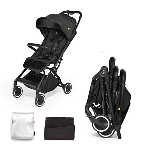 skiddoü Barnvagn resevagn Espoo automatisk vikbar barnvagn regnskydd resebarnvagn bekväm justerbar konstruktion en hand lätt ram kompakt platt storlek myggnät, svart