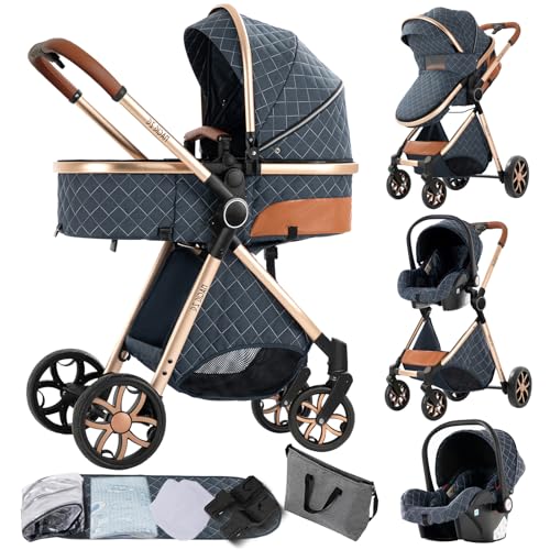 3-i-1 kombibarnvagn med resesystem, standardbarnvagn, barnvagn,buggy, nyfödd, bärbar resevagn, vikbar, high landscape-barnvagn (225 djupgrå)